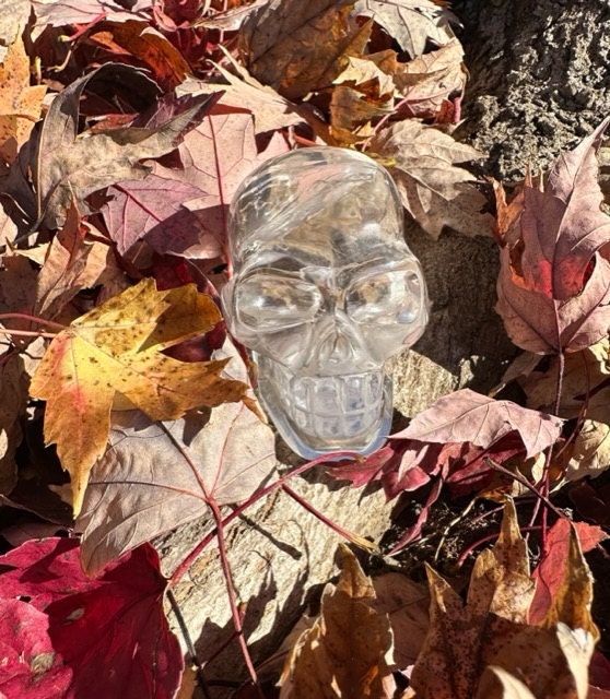 This is a clear quartz skull carved by Wilson's Pedras Venturini in Brazil, hand-picked by us in Denver. It is 274g and is 2 3/4 x 1 3/4 x 2.