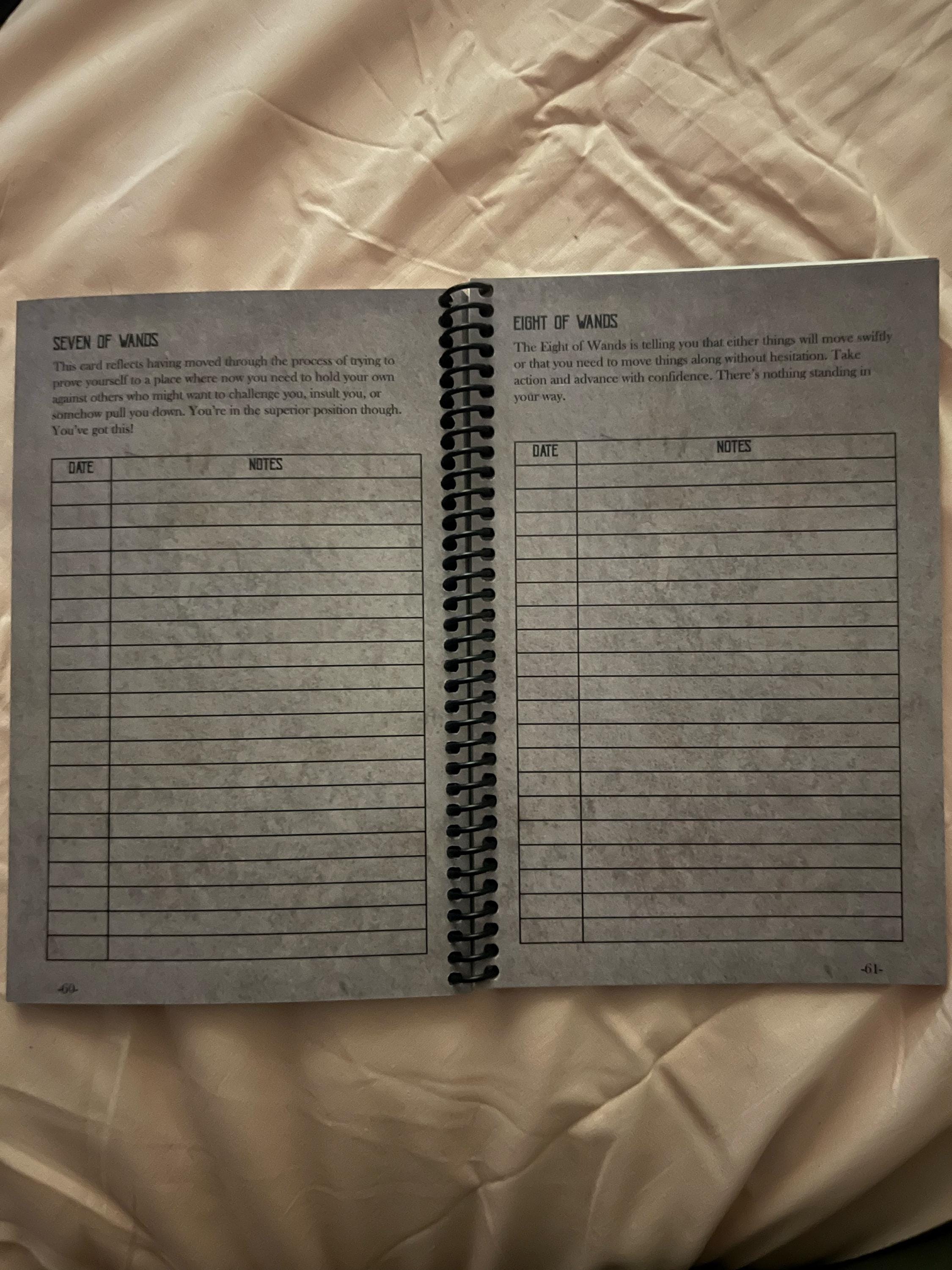 Gorgeous tarot journal I’ll actually use This tarot journal is honestly beautiful. The artwork and layout are really pretty, and it’s definitely something I’m going to use a lot in my practice. The pages feel nice, and it’s the kind of journal that makes you want to sit down and pull cards just so you can write in it. The only small thing I’d change (purely personal preference) is that I wish there was a little more of a fill-in section/option tab to customize things in my own way. And I didn’t notice that the suit is labeled as “Discs” instead of “Pentacles” when I ordered — that’s totally on me, not the creator — but it’s still completely usable and doesn’t take away from how pretty and functional the journal is. Overall, it’s a lovely, well-made journal that I’m happy to have in my collection, and I’m definitely going to k