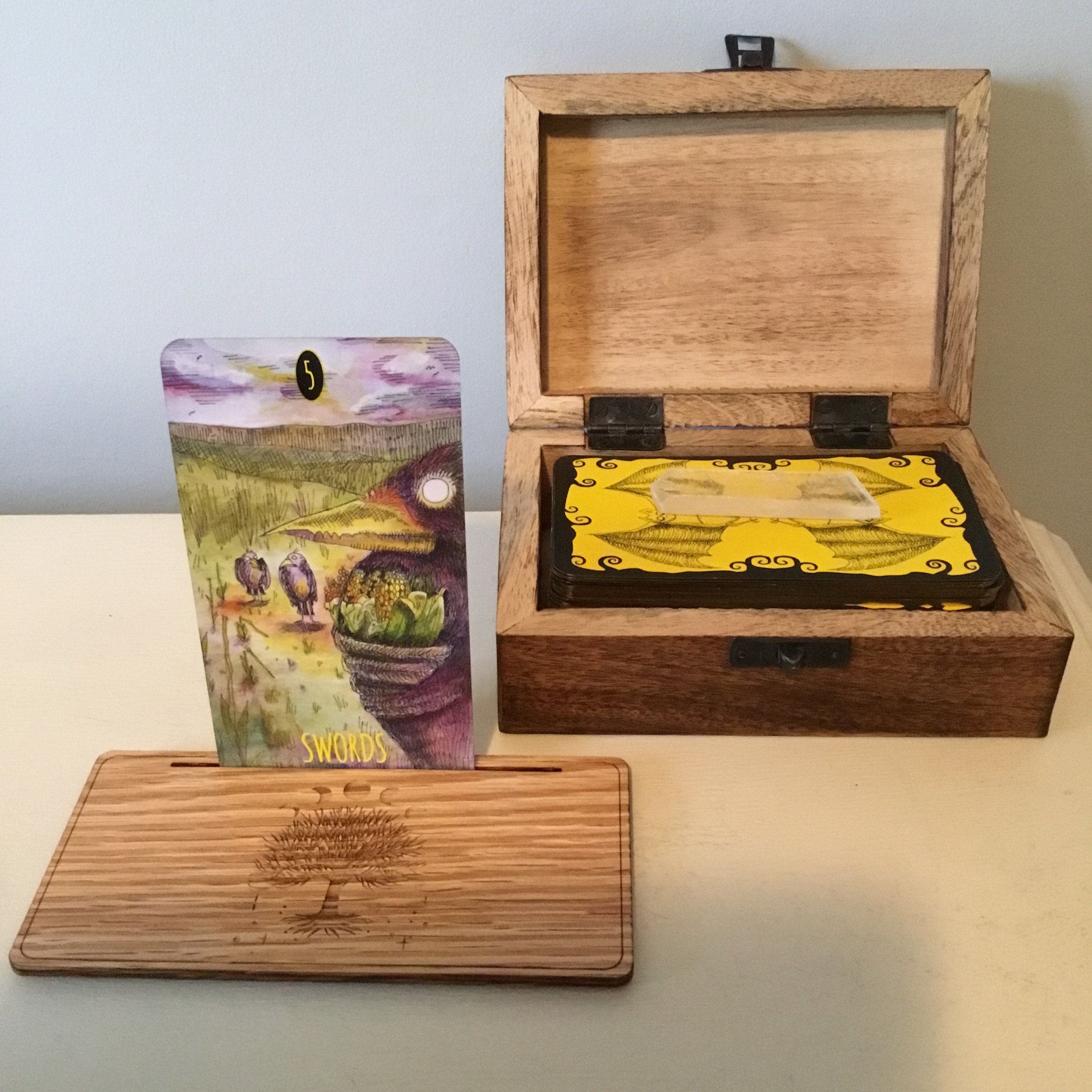 Please note that this cardholder does not come with any cards or crystals; the ones shown are for suggested display purposes only. The deck shown is the Roots and Wings Oracle deck by Kat Ryalls (with permission).